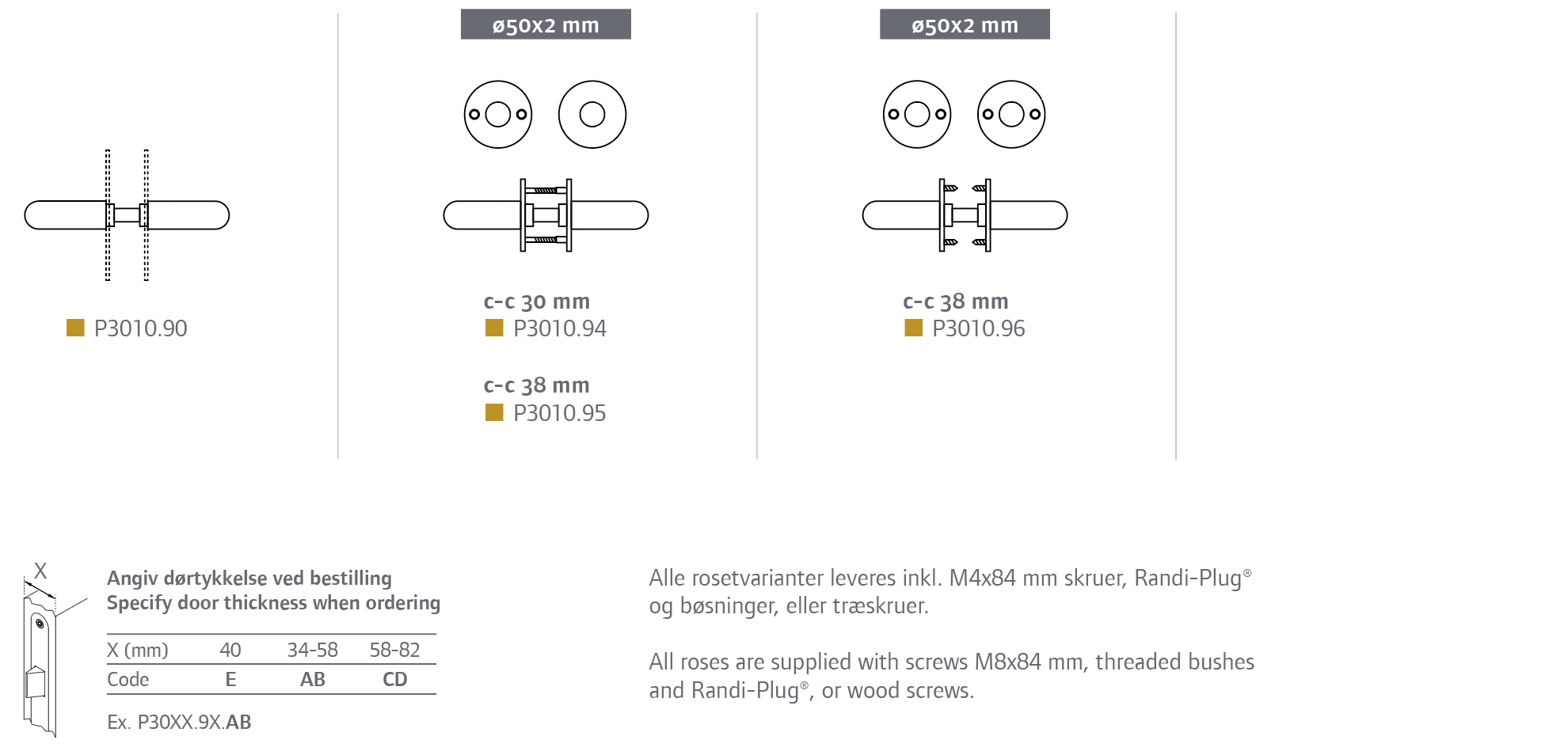 Lieferung als Set für Türstärke 34-58 mm oder 58-82 mm.