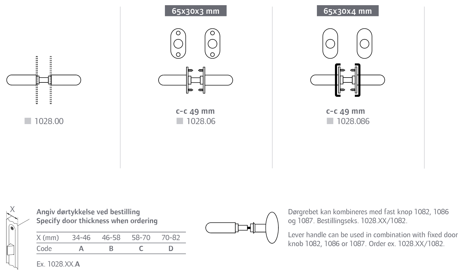 - Supplied in pairs, for door thickness 34-46 mm, 46-58 mm, 58-70 mm