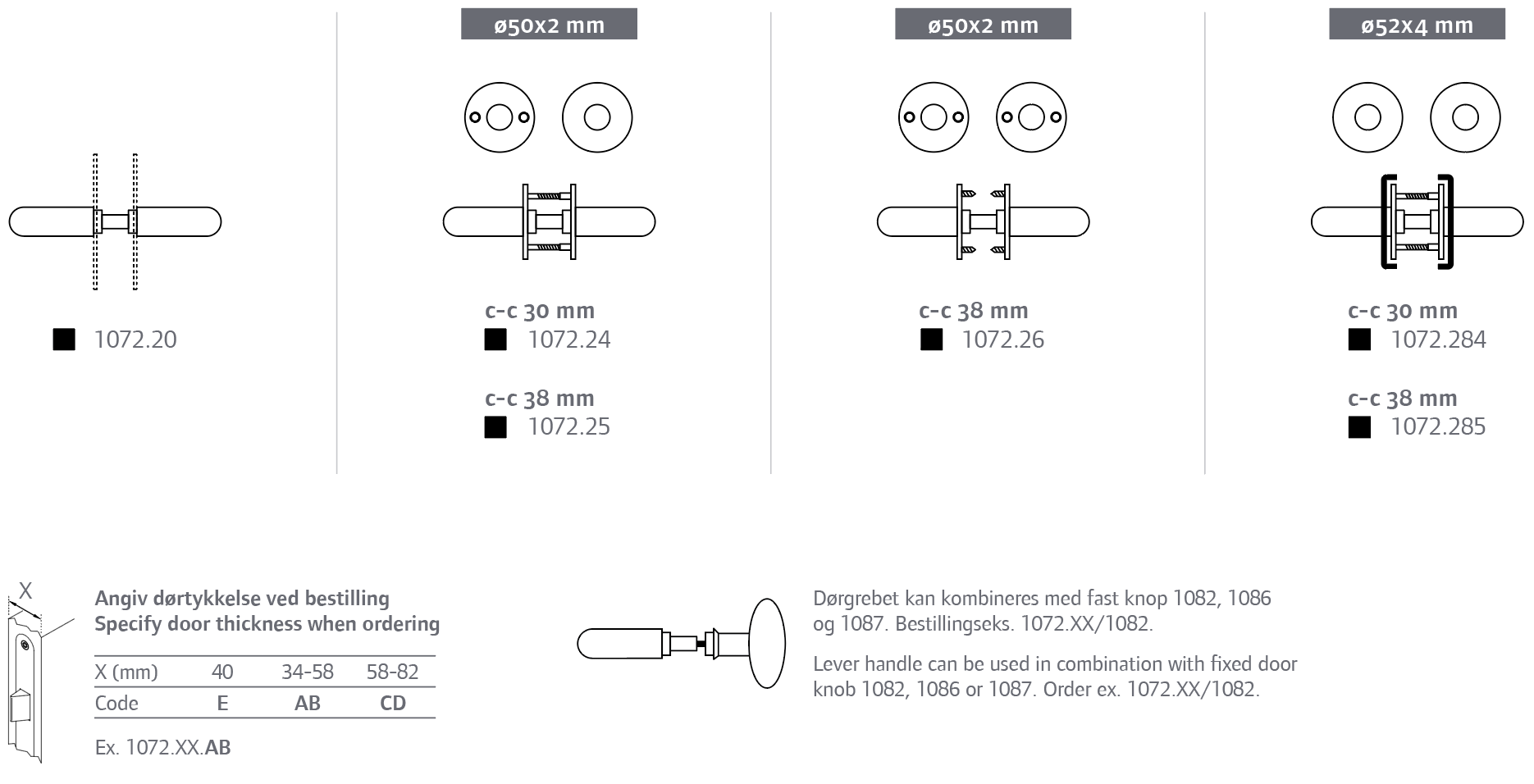 - Supplied in pairs, for door thickness 40 mm, 34-58 mm or 58-82 mm, specify door thickness when ordering.