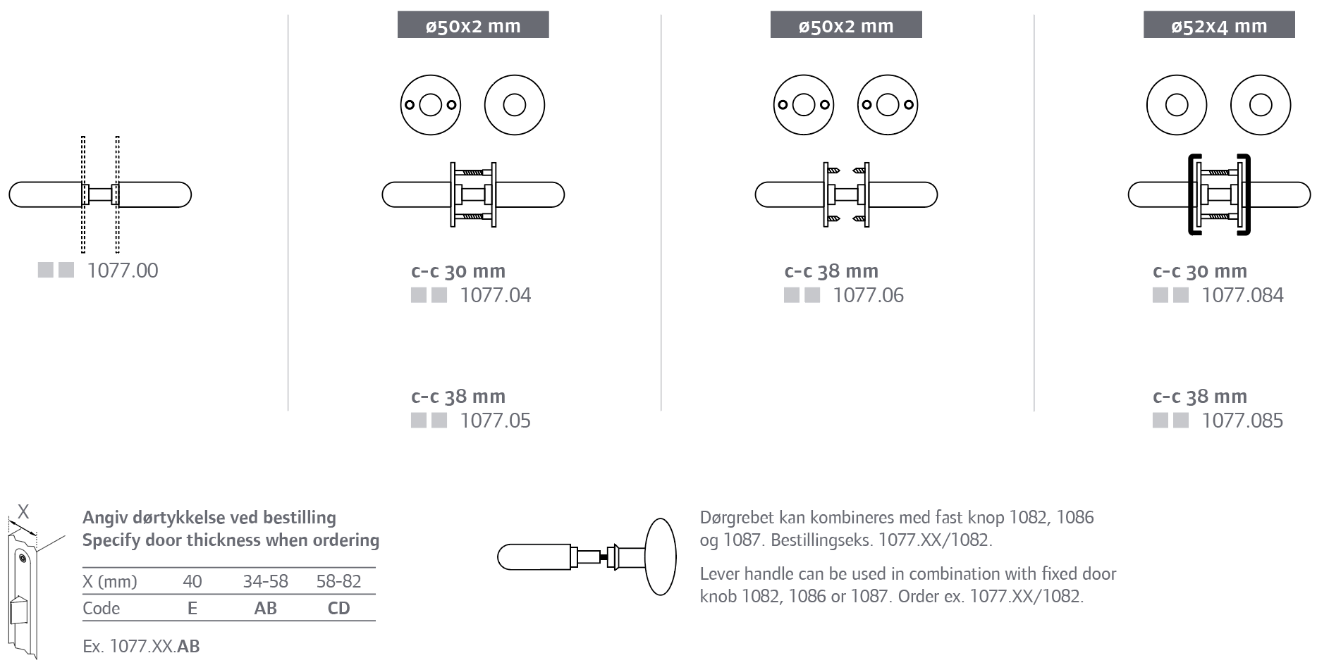 - Supplied in pairs, for door thickness 40 mm, 34-58 mm or 58-82 mm, specify door thickness when ordering.