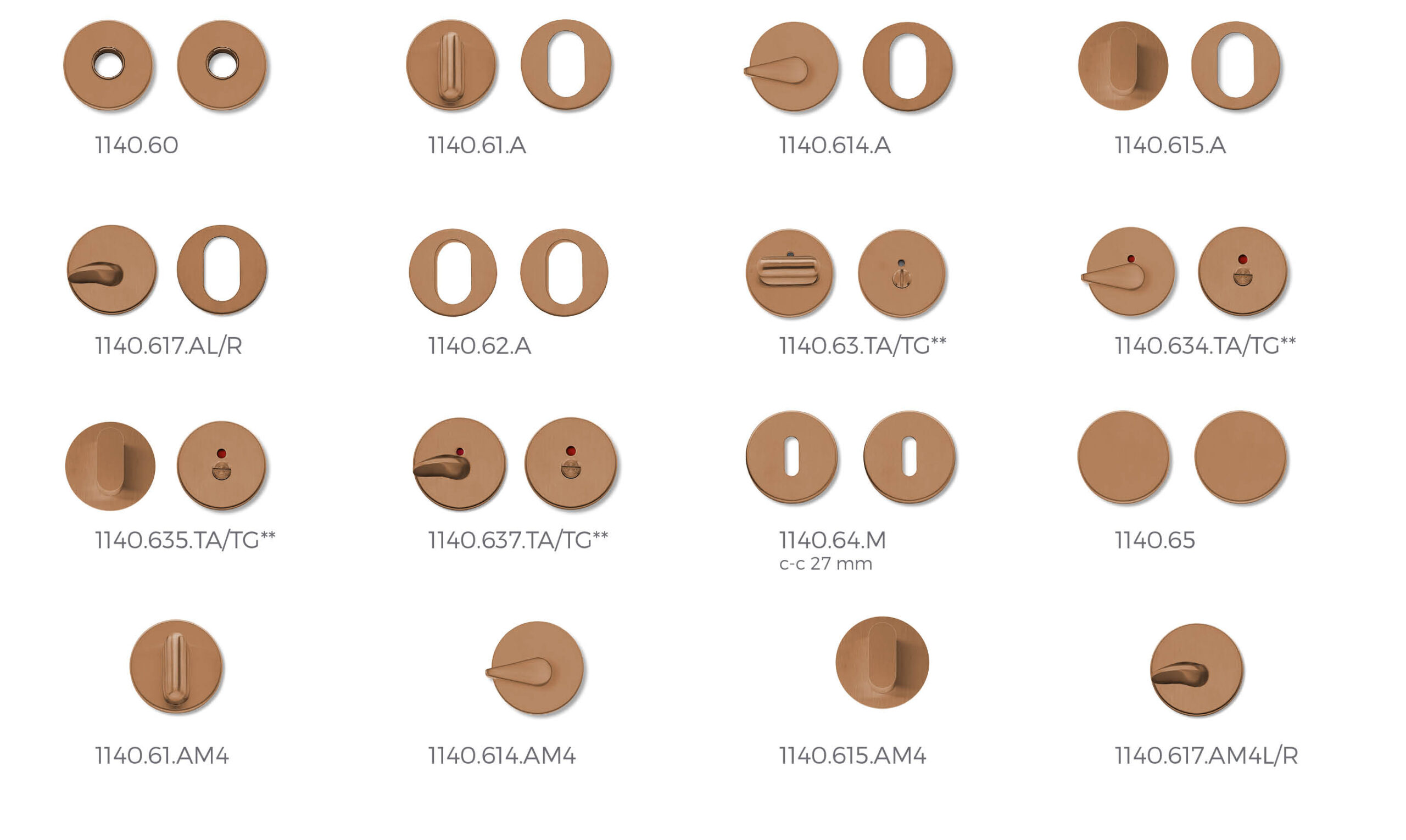 Escutcheons in copper PVD surface, ø52×4 mm.