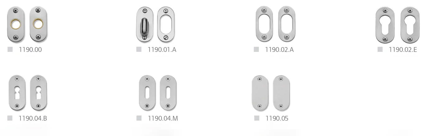 Oval escutcheons, 65x30x3 mm, for narrow profile doors