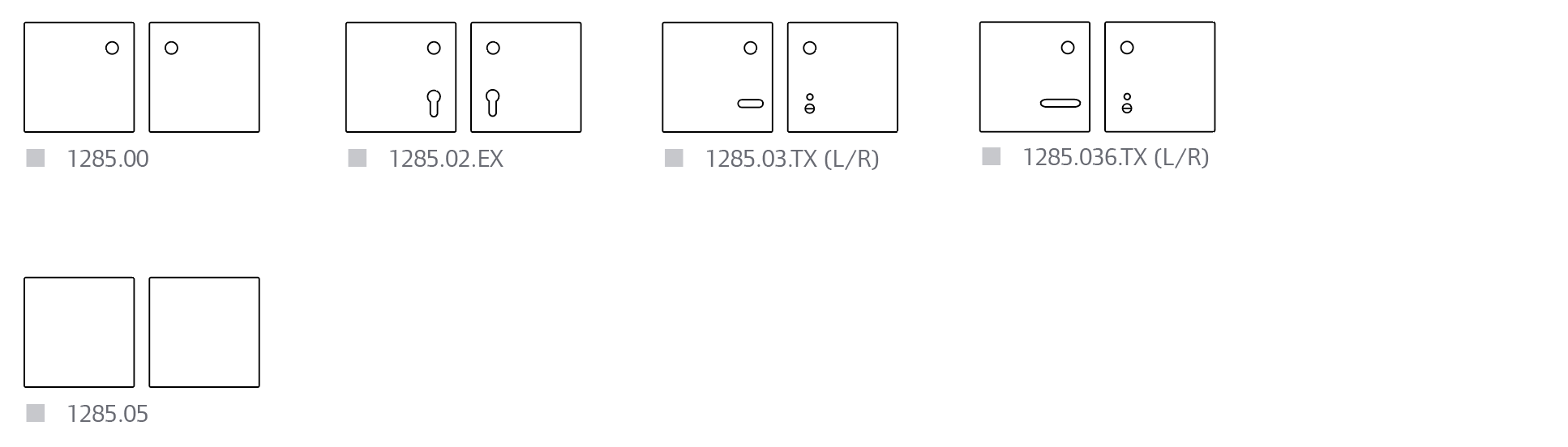 Specify right handed = R or left handed = L as last digit when ordering „bathroom“ or „cylinder/turn“. X indicates the distance between the centre of the lever hole and the centre of the keyhole/cylinder (X-centres).