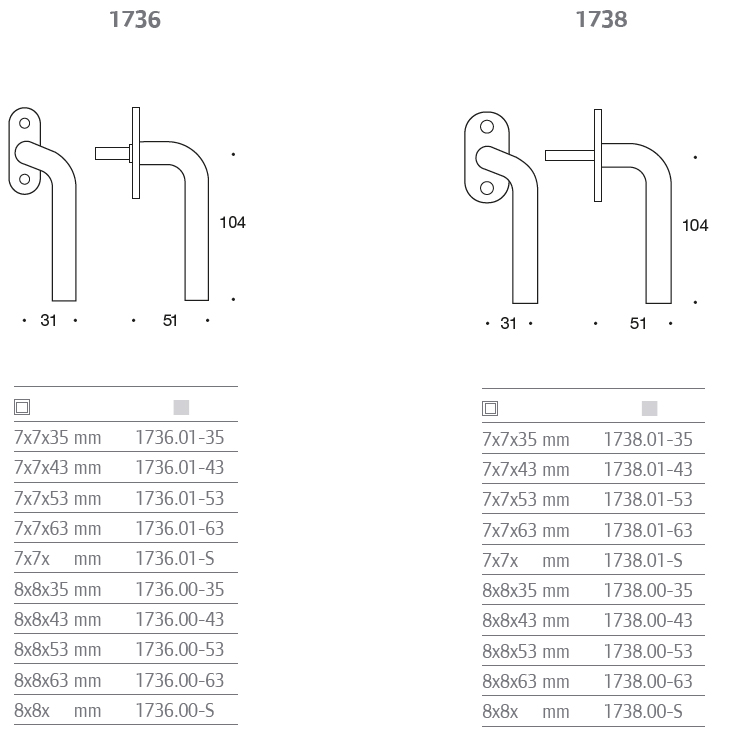 - The handle are available with either 7×7 mm or 8×8 mm spindle.