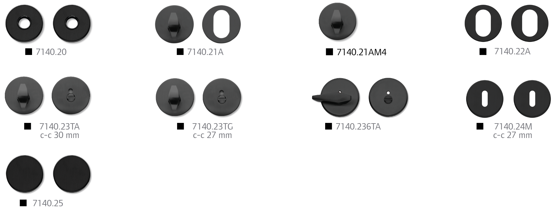 - Bathroom escutcheons: Standard for door thickness 34-45 mm. Fits Scandinavian standard locks.