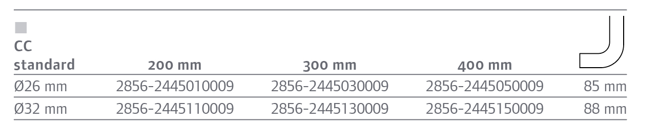 Specify fixing centres and separate fixing sets when ordering, see code scheme below.