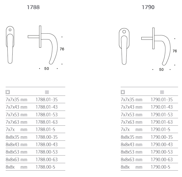 - Vinduesgreb leveres standard med enten 35, 43, 53 eller 63 mm stift længde.